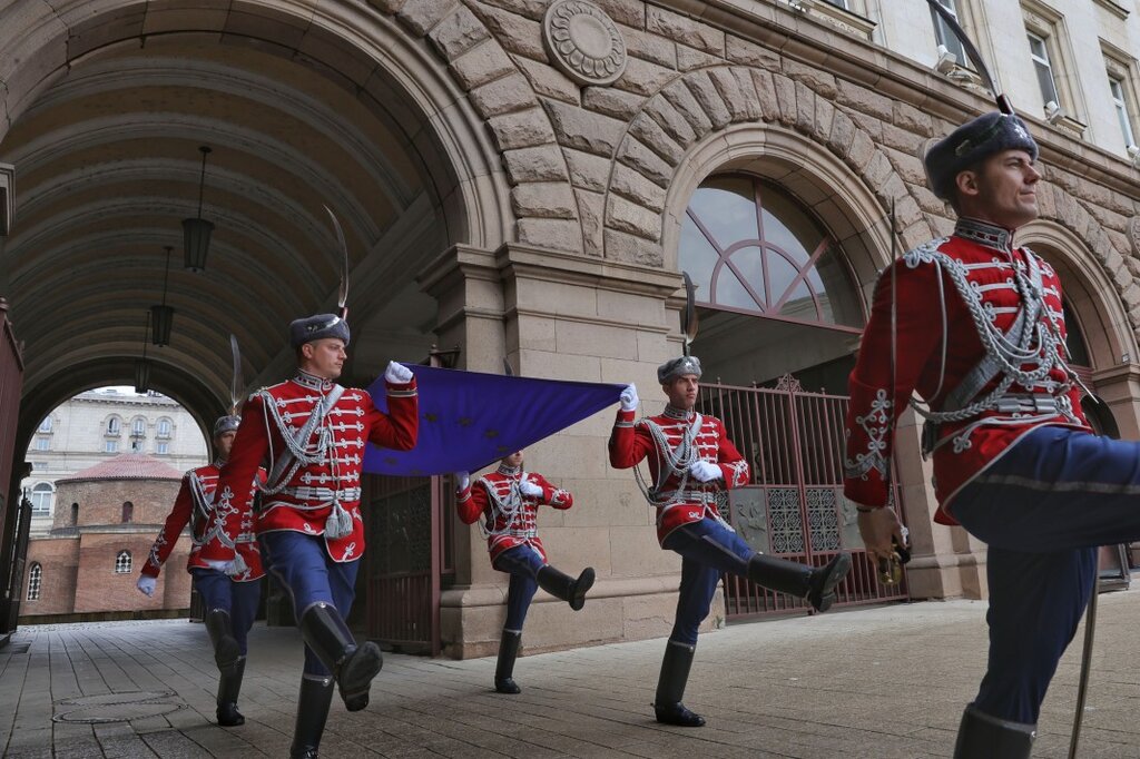 Служебният премиер Димитър Главчев присъства на издигането на знамето на Европейския съюз пред сградата на президентската администрация. След церемонията по издигане на европейското знаме премиерът Главчев влезе в президентството за среща с държавния глава.