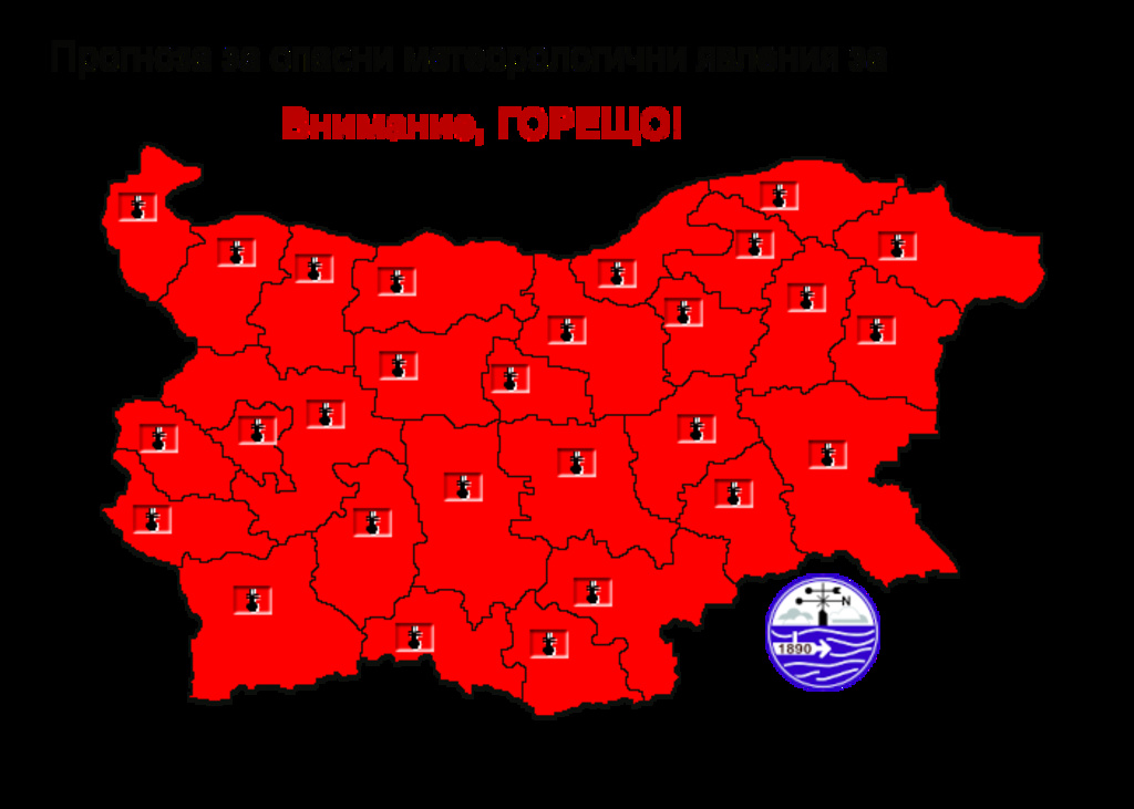 Червен предупредителен код за високи температури издаде за днес за цялата страна Националният институт по метеорология и хидрология. Към тази сутрин в сила е червен код за горещини и за утрешния ден.