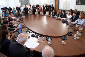 И още: "Пред вас се срещнахме с всички политически партии и независими депутати в 50-тото Народно събрание. От проведените разговори стана ясно, че между нас и пет политически субекта – независимите депутати около Николай Марков, независимите депутати от ДПС около Джевдет Чакъров, БСП, ПП-ДБ и ГЕРБ има пълно съвпадение на приоритетите, задачите, целите и начините на тяхното изпълнение.