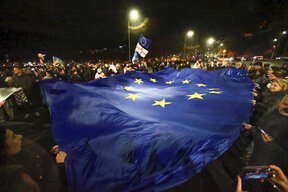 Страната е разтърсвана от безредици, откакто управляващата партия "Грузинска мечта" спечели победа на парламентарните избори на 26 октомври, които според проевропейската опозиция са били фалшифицирани. Изявлението на Кобахидзе в четвъртък, че Грузия няма да се стреми да започне преговори за присъединяване към Европейския съюз до 2028 г., предизвика яростна реакция от страна на опозицията и двудневни протести.
