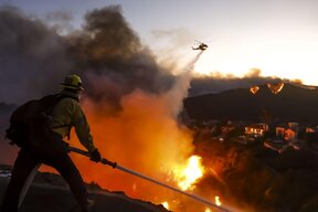 Калифорнийските пожарникари продължават да се борят с пожарите, обхванали района на мегаполиса Лос Анджелис, които вече унищожават и домове. Заради огнената стихия стотици хора напуснаха домовете си и това причини и огромни задръствания по магистралите, предаде Асошиейтед прес.
