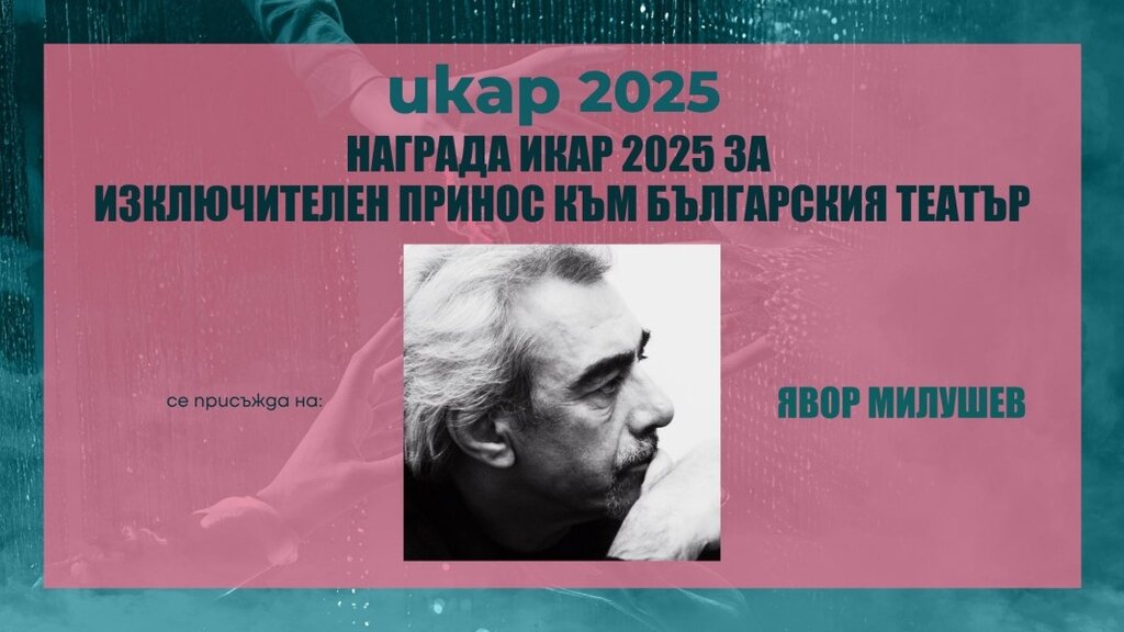 НАГРАДА ИКАР 2025 ЗА ИЗКЛЮЧИТЕЛЕН ПРИНОС КЪМ БЪЛГАРСКИЯ ТЕАТЪР се присъжда НА ЯВОР МИЛУШЕВ