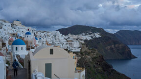 Възстановиха движението на фериботи за хората, които искат да напуснат Санторини.