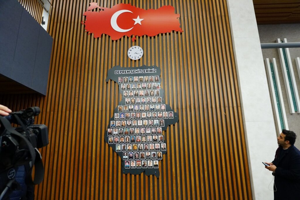 Болница в Хатай, стена със снимки на загинали лекари след струване на отделение вследствие на земетресението на 6-и февруари 2023 г.