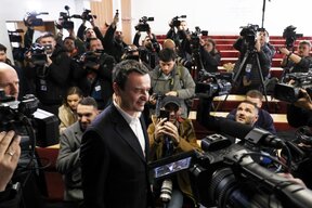 Мъж се готви да гласува на парламентарните избори в Прищина, Косово, 9 февруари 2025 г.