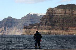 Залезът над морето и евакуираното село Иа на Санторини, 5 февруари 2025 г.