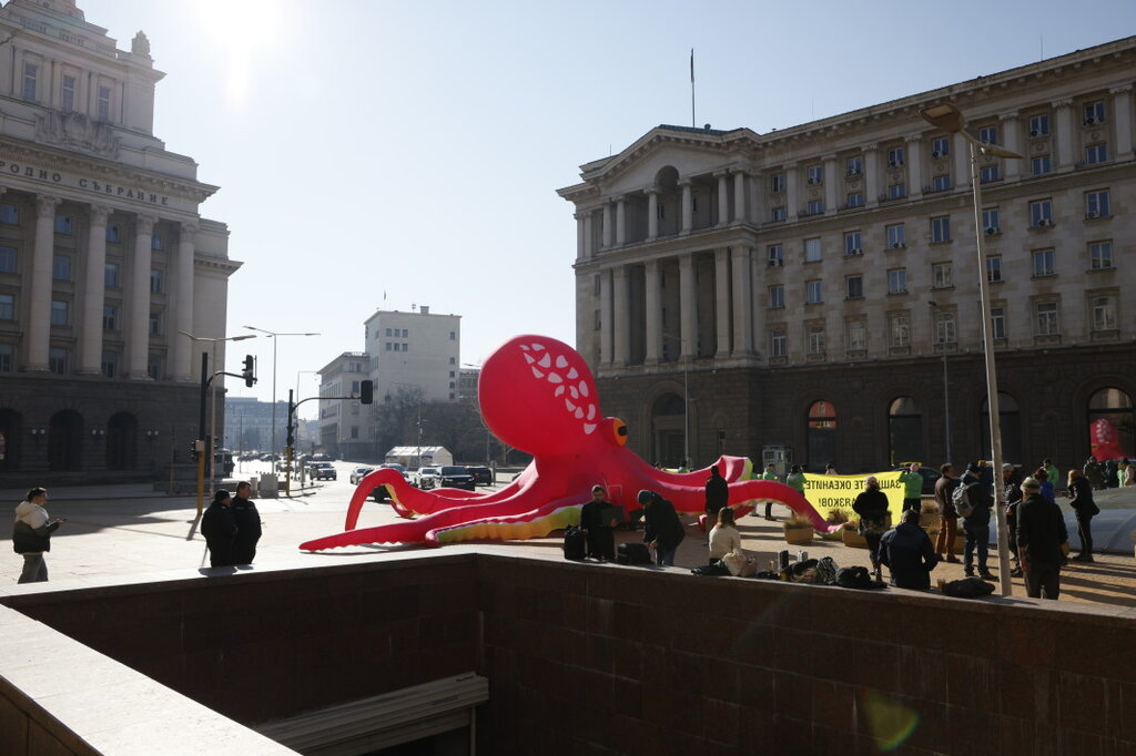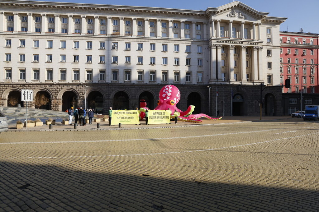 Огромен розов октопод превзе пространството пред Министерски съвет на 4-ти декември. С него екоактивисти от