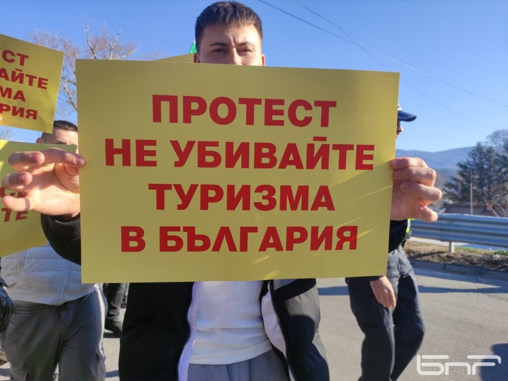 Над 400 представители на туристическия бизнес от Югозападна България излязоха на протест, като за кратко затрудниха движението при пътен възел Симитли. Десетки полицаи охраняваха района, но напрежение не се стигна.