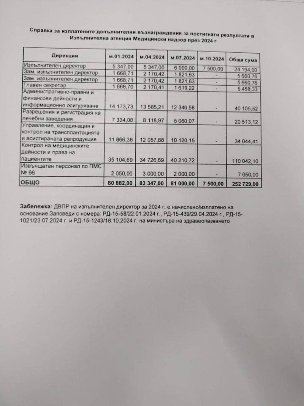 Над 335 хиляди лева са раздадени като възнаграждения за постигнати резултати на ръководството и служителите на агенция "Медицински надзор" за период от 12 месеца, показва справката. Според Васил Пандов впечатление правят бонусите за дирекцията, отговаряща за трансплантациите: