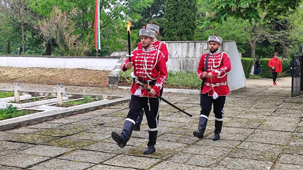 По традиция граждани и институции поднесоха венци и цветя пред обелиска на военната гробница, където на четири езика е изписано: