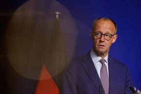 Гръцкият премиер Кириакос Мицотакис и германският канцлер Фридрих Мерц по време на съвместната си пресконференция в Берлин, 13 май 2025г.