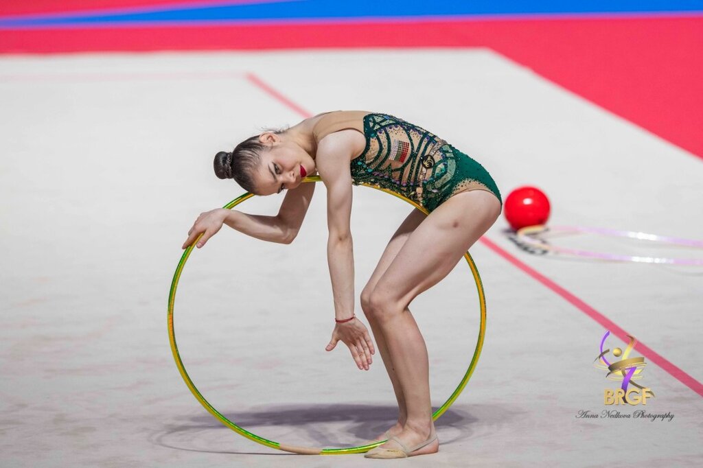 Втората националка Дара Стоянова допусна грешка в първото си изпълнение на топка (излизане на уред и гимнастичка извън терена) с 22.216 точки (трудност 9.3, изпълнение 6.300, артистичност 7.266, наказание 0.650), което е десети резултат. На обръч тя изигра прекрасно композицията си и 27.866 (12.6, 7.600, 7.666) точки се окичи със сребърния медал.