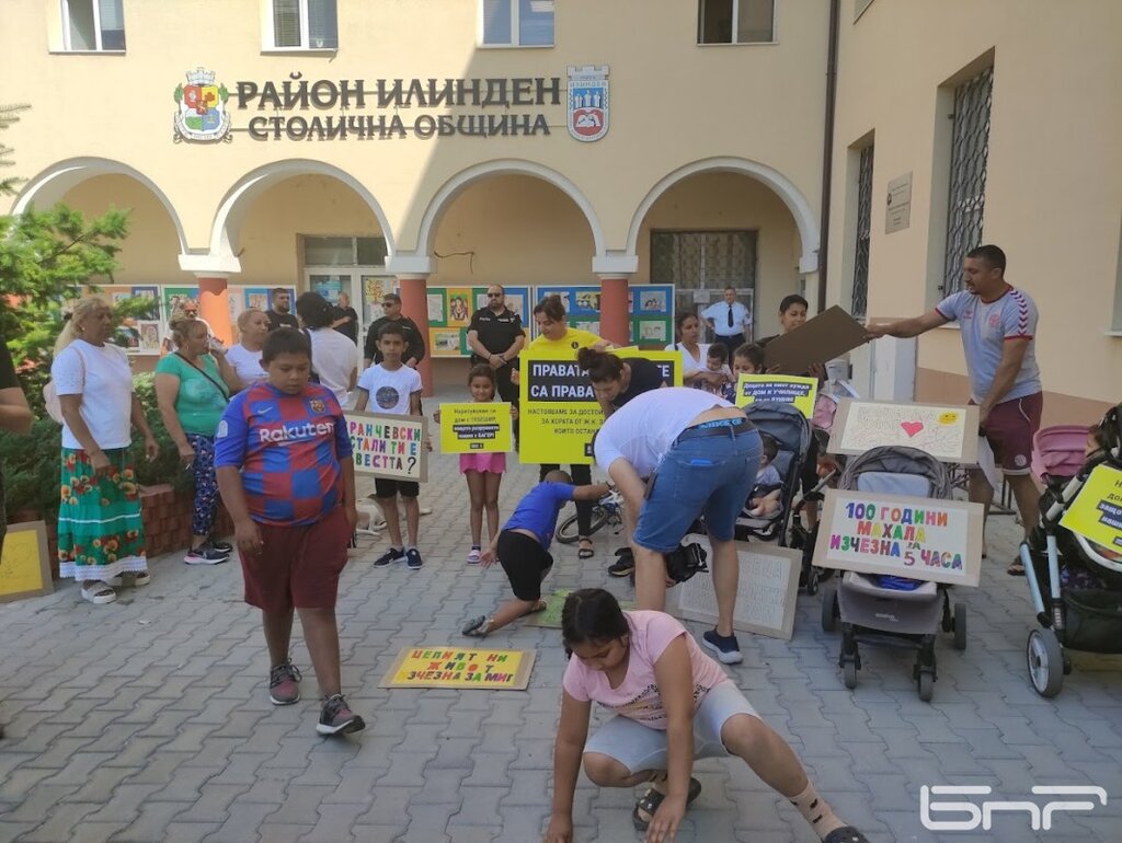 Жители на разрушените незаконни постройки в столичния квартал "Захарна фабрика" излязоха на мирен протест, за да напомнят, че вече два месеца живеят с децата си навън, след като домовете им бяха разрушени по разпореждане на кмета на район „Илинден“ Емил Бранчевски.