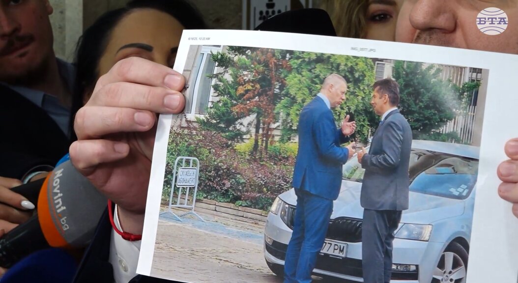 "Ето към вас, към вас. С едното лице има много снимки, Кики, с другото няма. Кои са тези хора познавате ли ги. Така, какво се чу преди малко. Ето това са задкулисните договорки в държавата. Тези две момчета, вижте как се хилят и се обичат. Оставям ви".