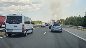 "Поради задимяване на трасето и риск от горящи сухи треви и стърнища в разделителните ивици между двете платна и в близост до мантинелите между двата пътни възела автомагистрала "Тракия" е изцяло затворена за движение в двете посоки. Автомобилите се пренасочват - по посока София през единия пътен възел, а идващите от София към Бургас - през другия пътен възел. На мястото има екипи на сектор "Пътна полиция", насочени са и на районното управление в Пазарджик, които да подпомогнат действията. Така че, ако в този участък има автомобили, да се изтеглят безпрепятствено от тази зона".