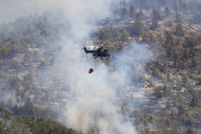 Преди обед в действията по овладяването на огъня се включи и хеликоптер от ВВС на българската армия. Теренът е изключително труден и скалист.