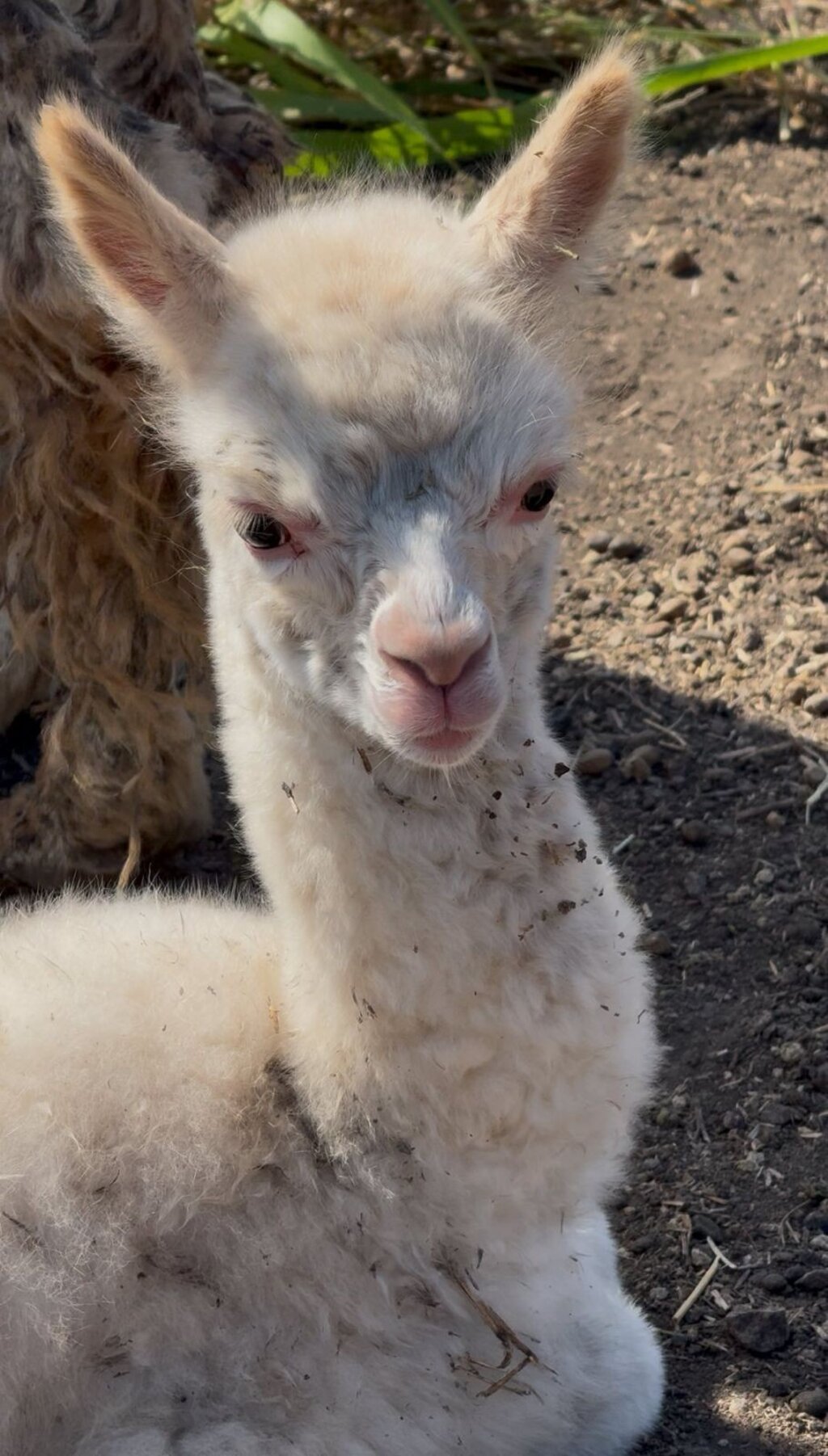 "Още не сме забелязали какъв пол е малката алпака, защото след като се роди вчера сутрин, тя се изправи в рамките на около два часа и започна да суче от майката, което е най-голямата радост за нас. Това значи, че то ще живее".
