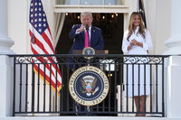 Питър Манделсън (вдясно) слуша как президентът на САЩ Доналд Тръмп (вляво) обявява търговско споразумение между Съединените щати и Обединеното кралство в Овалния кабинет на Белия дом във Вашингтон, САЩ, 8 май 2025 г.; ЕПА/БГНЕС