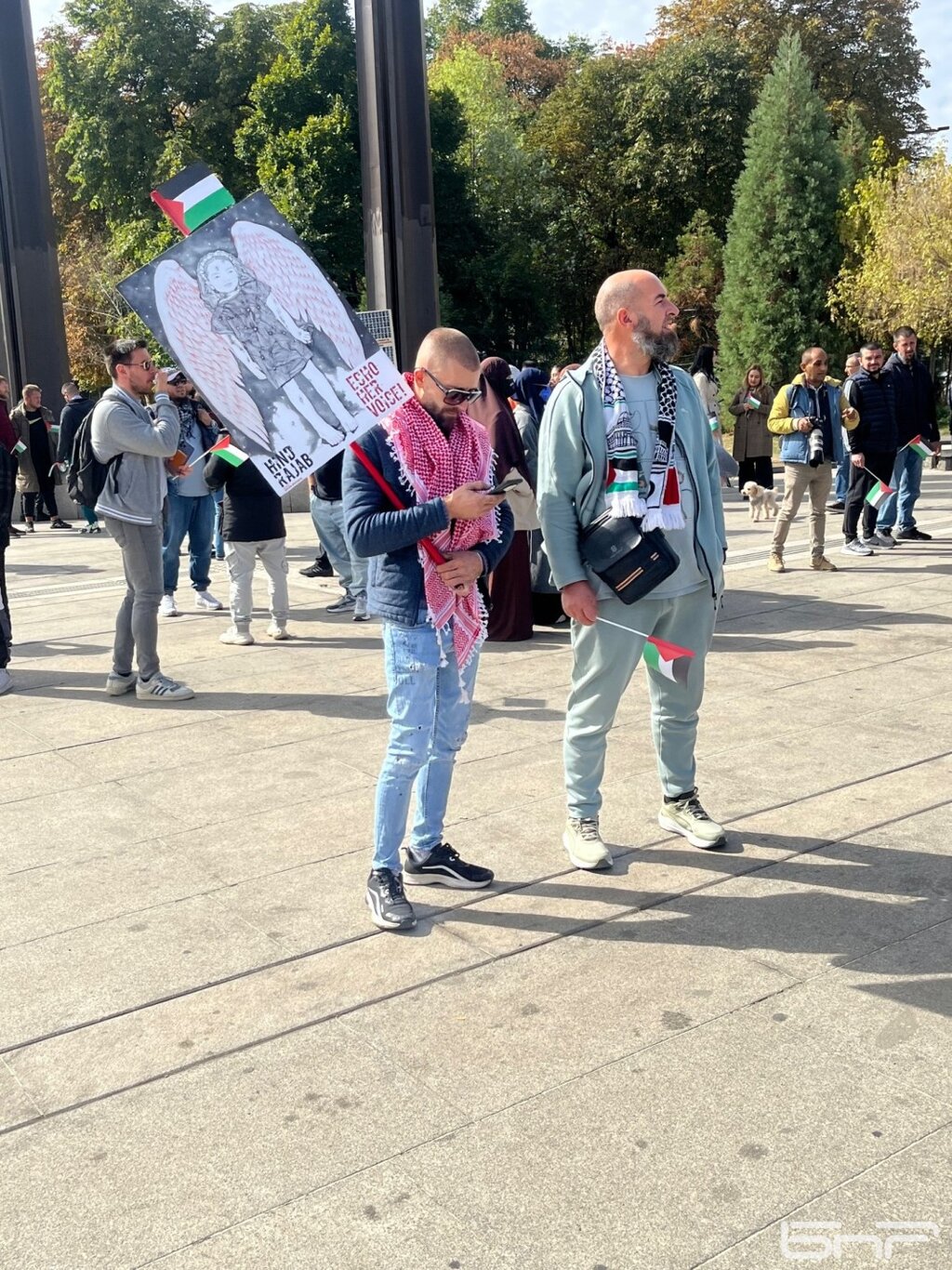 "За да подкрепя каузата на палестинския народ. Да изразя възмущението си срещу геноцида, който се провежда в Газа. Българската позиция абсолютно е позорна", споделиха участници в демонстрацията, като отправиха послания: