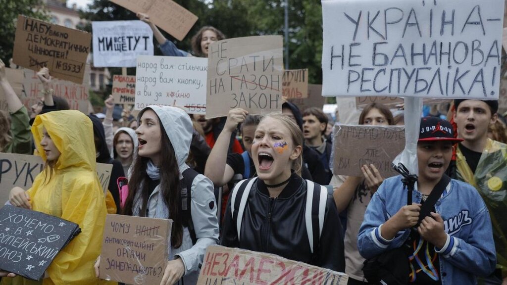 През юли избухнаха национални протести срещу промени, ограничаващи независимостта на Националното бюро за борба с корупцията и Специализираната прокуратура. Украинците се опасяваха, че страната може да загуби желания статут на страна кандидат за ЕС, който ѝ беше предоставен, при условие че започне надеждна борба срещу корупцията.