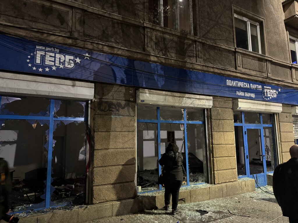 Има нанесени щети и по офис на партия ГЕРБ в столицата.
