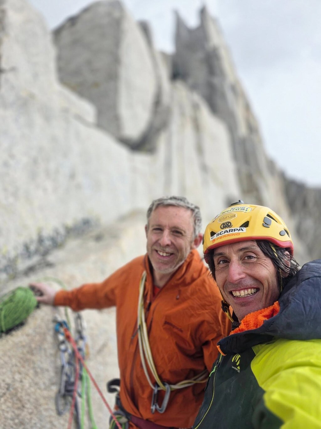 Матео: Това беше моят първи път в Патагония през зимата, защото когато тук е лято, в южното полукълбо е зима. От години исках да видя този връх през зимата и накрая успях. Нямаше никого, беше по-студено, снежно, имаше повече проблеми, отколкото през лятото, беше по-диво - такова, както е било преди години. За мен беше особено, емоционално преживяване... Маршрутът е направен от Ренато Казарото - сам, през лятото (на 1979 г. - б.а.). Бащата на Марко (Джовани Майори - б.а.) е бил партньор на Казарото, тогава е трябвало да си тръгне, не е могъл да изкатери маршрута. И Марко беше чувал за този маршрут от малък, това беше мечта за него. За мен пък беше важно да направя зимно изкачване, защото вече бях преминавал маршрута през лятото.