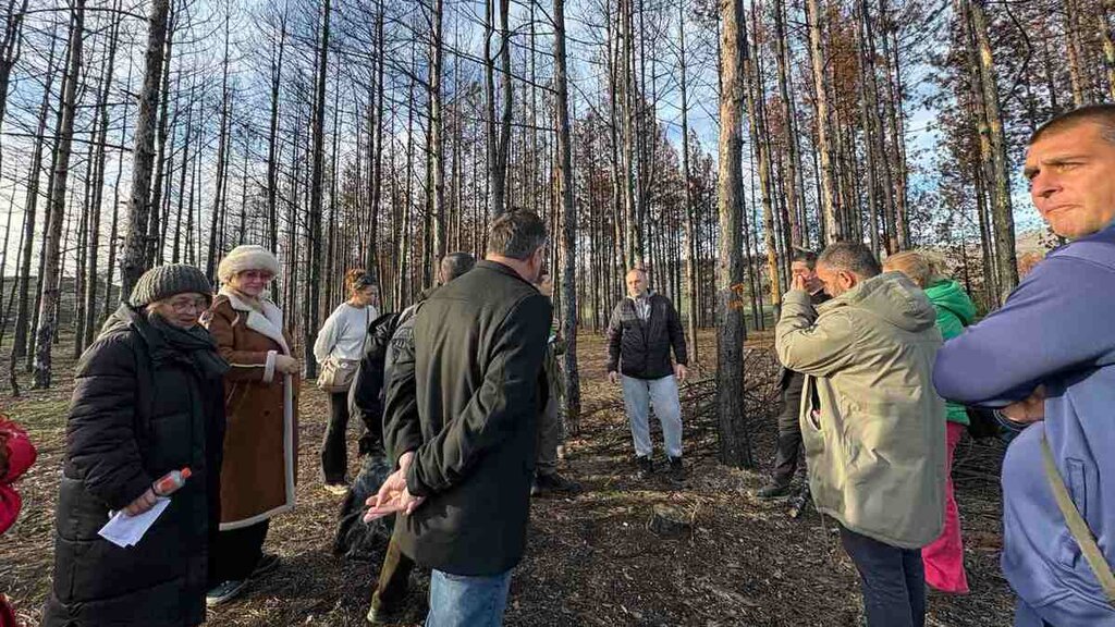 "Тези дървета в момента са опасни от гледна точка на пожароопасност. Ако стане един пожар, това може да стане с много по-голяма сила", поясни пред местните хора инж. Росен Райчев, заместник-изпълнителен директор на Изпълнителната агенция по горите.