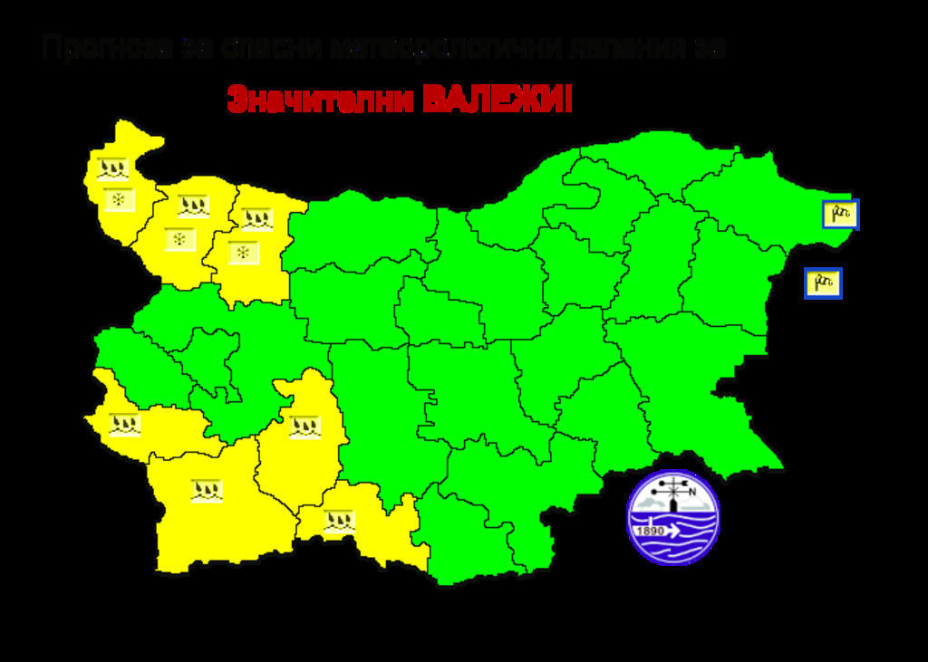 Жълт предупредителен код за обилни валежи от дъжд и сняг издаде за днес Националният институт по метеорология и хидрология за областите Видин, Враца и Монтана. Жълт код за дъжд е издаден и за областите Кюстендил, Благоевград, Пазарджик и Смолян.