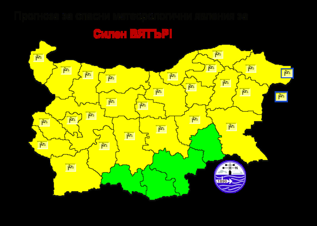 Жълт предупредителен код за силен вятър издаде за днес за 24 области Националният институт по метеорология и хидрология. Предупреждението не важи за четири области - Смолян, Хасково, Кърджали и Ямбол.