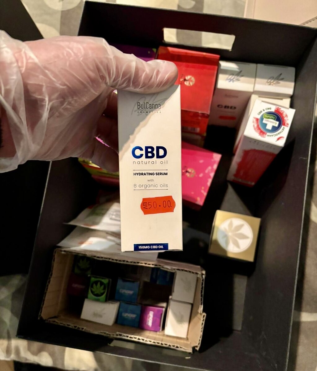 Извършени са претърсвания на 14 имота и 2 автомобила, откъдето са иззети голям брой веществени доказателства. Намерени са десетки пълнители с жълтеникава на цвят течност, реагираща при полеви наркотест на коноп, електронни цигари (вейп), метален контейнер и стотици пълнители, съдържащи канабиноид. На установените лица са повдигнати обвинения.