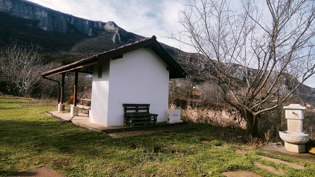 Каменната плоча до гробищния параклис във врачанското село Паволче