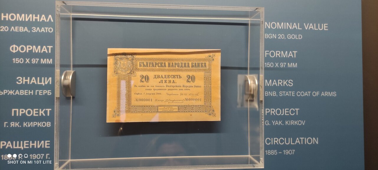 Банкнотите са отпечатани няколко години по-късно, през 1885 –а година в Санкт Петербург. А първите книжни пари, с номинал 20 лева и уникален сериен номер 000001, са гвоздеят в музейната експозиция на Габровския исторически музей. Този изключително рядък артефакт е стигнал до нас години, след като габровски търговец от фамилията Тюлюмбакови я е запазил в период на масово обращение на руски рубли и други чужди валути. Неговите наследници я продават и така става гордост за музея, свързан с историята на парите и поради факта, че музейната сграда някога е била седалище на Българската народна банка.