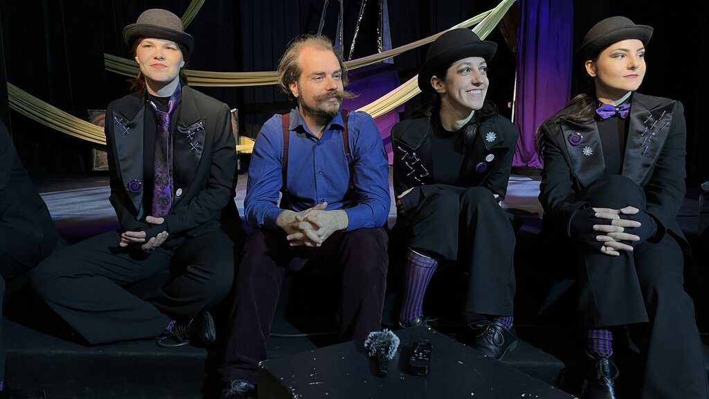 Режисьор на постановката е Любомир Желев, а на сцената има кино, има фантазия, има всичко. Даже повече - 17 кукли с шестима актьори.