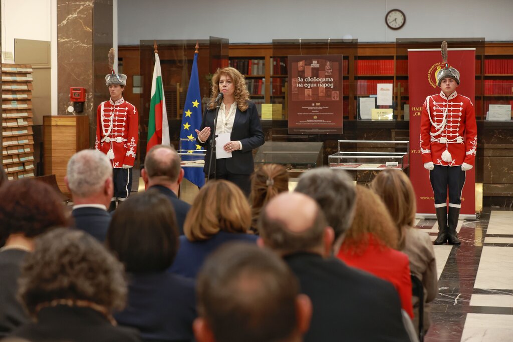 Експозицията, която е съвместна инициатива и включва документи на Националната библиотека и Държавна агенция "Архиви", е част от националните чествания под патронажа на президента Илияна Йотова.