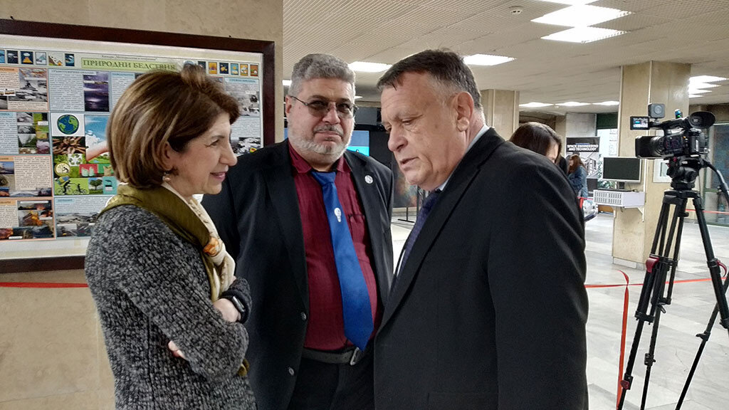 Директорът на ЦЕРН д-р Фабиола Джаноти, деканът на Физическия факултет проф. дфзн Георги Райновски и ректорът на СУ проф. д-р Георги Вълчев