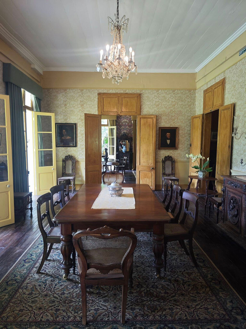 Разбира се, не цялата къща е отворена за посетители. Те могат да разгледат, освен спалнята и детската стая, музикалния салон, кабинета и трапезарията. Да чуят как проскърцват 200-годишните подове от тиково дърво и дори да ударят по няколко тона на стария роял с клавиши от слонова кост, пожълтели като прогнили зъби. Мебелите са от ценни дървесни видове като абанос, жакарадна, палисандър, дори от т.нар. Додово дърво, чиито семена били любимо блюдо на изчезналата вече птица додо. Нейна фигура може да се види под витата стълба в Еврика и на знамето на Мавриций. Защо симпатичното пиле вече не съществува, ще ви разкажа в друга история.