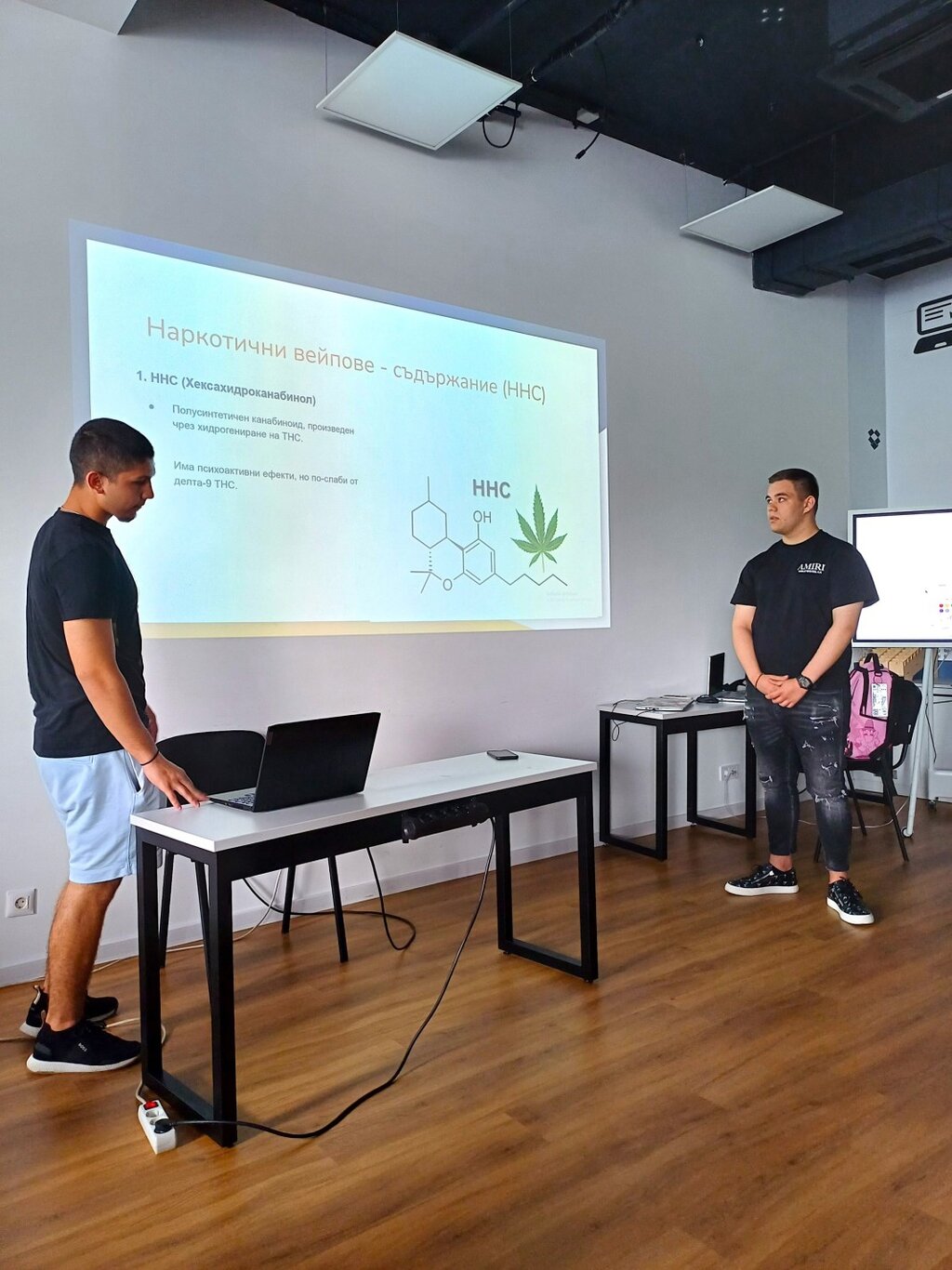 На 8 май в Гимназия за дигитални науки "СофтУни БУДИТЕЛ" се проведе СТЕМ ден, посветен на темата "Как това, което консумираме, влияе на поведението и здравето ни". В рамките на събитието десетокласници представиха пред своите по-малки съученици – осмокласници – различни аспекти на вредите от модерни субстанции като вейпове, снус и райски газ.