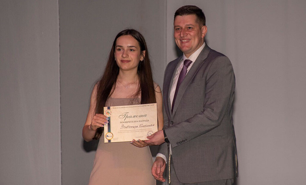 Златомира Балболова, десетокласничка от Бургас, спечели наградата на БНР в конкурса с разказа си "Дни на изпитание, нощ на надежда". Отличието връчи лично генералният директор на Националното радио, Милен Митев.
