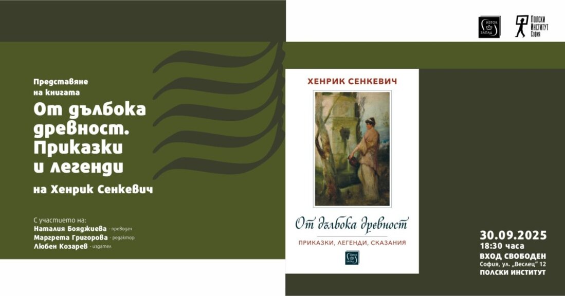 Така издателите на книгата "От дълбока древност" представят най-новото издание с непознати творби на Хенрик Сенкевич, дело на издателство "Изток – Запад" (2025. Книгата излиза с любезното съдействие на Полския институт в България. Съставител и преводач от полски език на непревежданитe досега у нас разкази и приказки на Сенкевич, е Наталия Бояджиева. Тя превежда от руски, английски, полски и италиански и преподава тези езици. Автор е на две книги с разкази - „Светлина от Изтока“ и „Лицата на Филипините“.