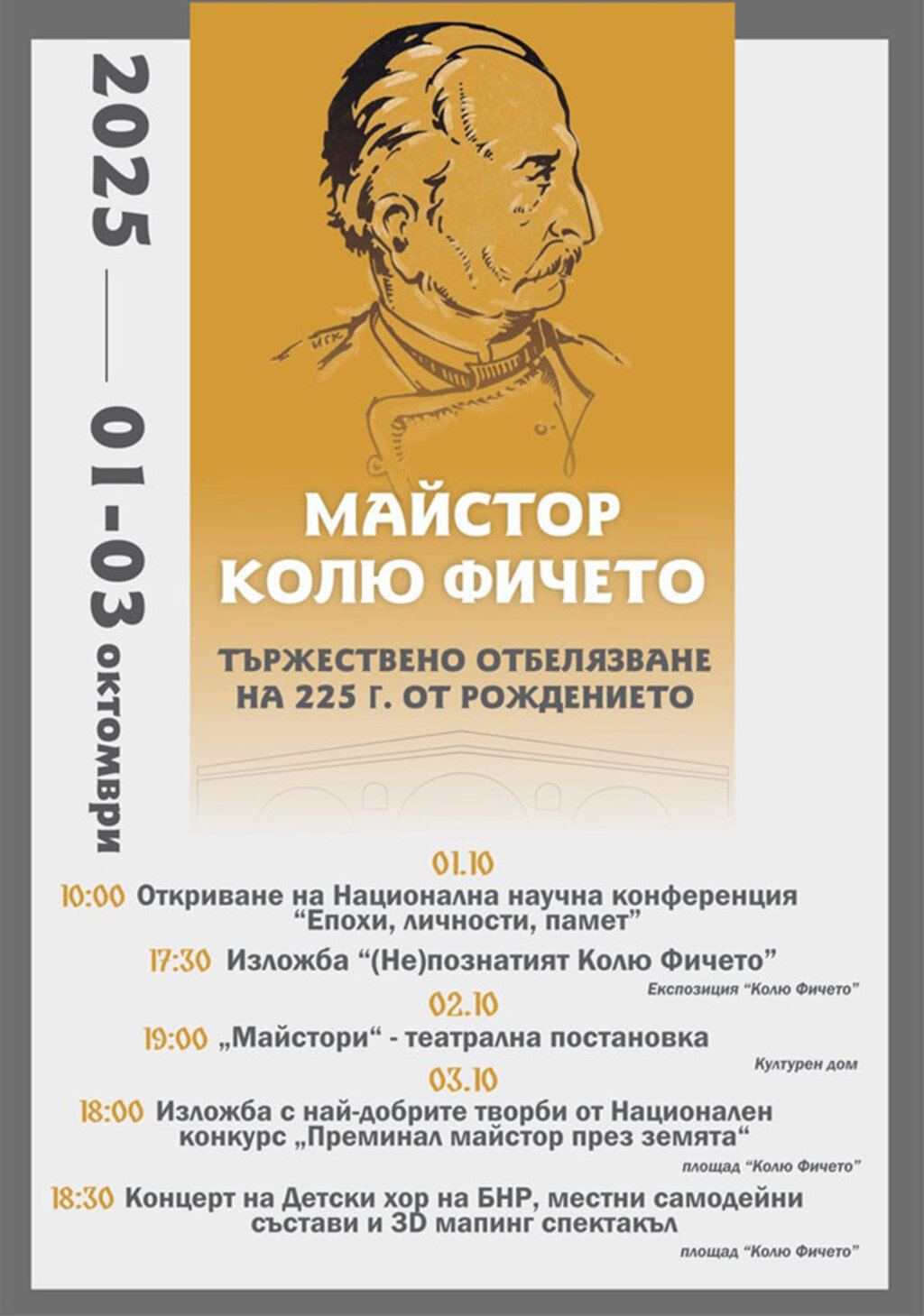 Дряново отново е център на науката и културата. От 1 до 3 октомври Историческият музей в града посреща участниците в националната научна конференция "Епохи, личности, памет". Форумът, който тази година има своето четвърто издание, ще събере близо 50 учени, университетски преподаватели, музейни специалисти и изследователи от цялата страна. Те ще представят своите разработки в две тематични секции: "Културно наследство, музеология, етнология, архитектура и изкуство" и "История и личности". Конференцията е част от националната програма "(Не)познатият Колю Фичето", посветена на 225 години от рождението на възрожденски майстор строител, която се реализира под патронажа на Министерство на културата. Организатор е Исторически музей – Дряново, а сред партньорите са Община Дряново, Историческият факултет на Великотърновския университет "Св. св. Кирил и Методий", Университетът по архитектура, строителство и геодезия и Център за върхови постижения "Наследство БГ" – УАСГ. Научното ръководство е поверено на проф. д-р Петко Ст. Петков от ВТУ "Св. св. Кирил и Методий" и доц. д-р арх. Велина Панджарова от УАСГ.
