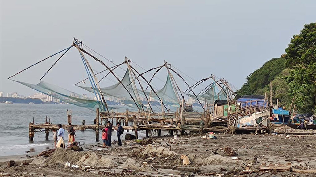 Плажът на Кочи е далеч от най-предпочитаната бийч дестинация в Керала, но туристите се тълпят не за да събират тен, а за да снимат до премала огромните рибарски мрежи. Призрачно-причудливи инсталации обграждат бреговете. Като във въздушна поезия през тях се процежда небето. Гигантски и ефирни кошове за лов на облаци. Извън внушението за съвременно изкуство, това са просто рибарски мрежи, донсени от китайския пътешественик Женг Хе през 14-и век. Днес са една от задължителните забележителности, където водят гостите на поклонение във форт Кочи.