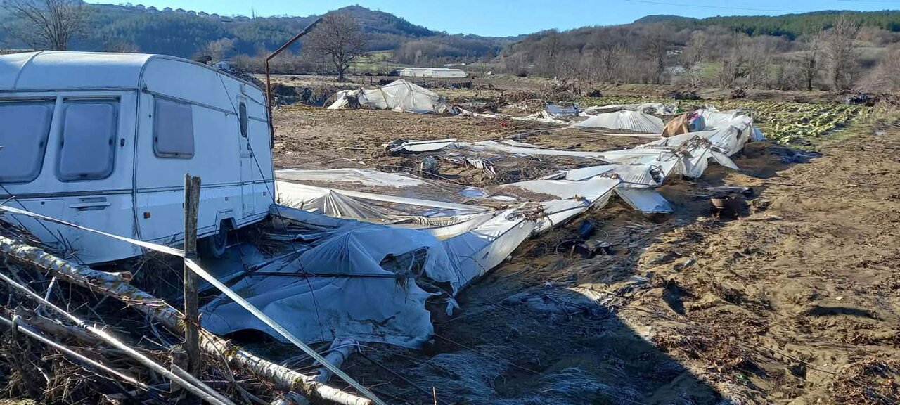Кадрите от мястото показват картина на пълно опустошение – пластове пясък, кал, строителни отпадъци, ламарини, дори парчета асфалт, струпани върху земята.Щетите са стопроцентови – два малки трактора със селскостопански инвентар и две стопански постройки са напълно унищожени. Това е техниката, с която Асен Хаджиев е обработвал земята си сам, заедно със семейството си. Майка му – пенсионерка, му е помагала в работата, както и съпругата му, която е учителка и през лятото се включва в земеделските дейности.