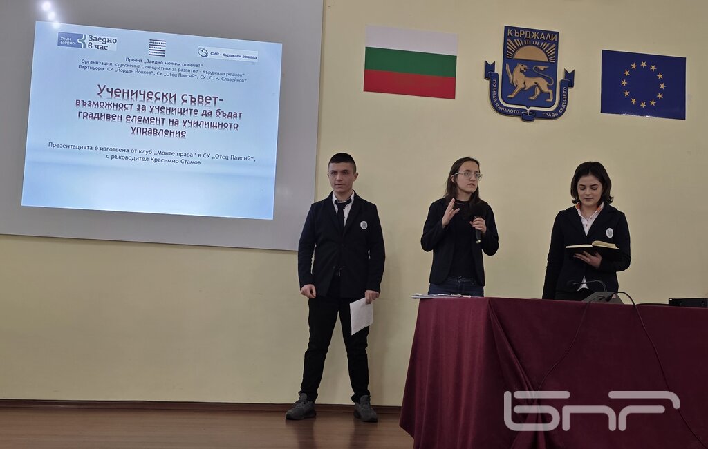 Представители на ученическите парламенти от трите средни училища в Кърджали – СУ „Йордан Йовков“, СУ „Отец Паисий“ и СУ „П. Р. Славейков“ – представиха дейността си пред свои съученици по време на междуучилищна дискусия на тема „Ученическият парламент/съвет – възможност за учениците да бъдат градивен елемент на училищното управление“. Събитието се проведе в рамките на проект „Заедно можем повече“, изпълняван от Сдружение „Инициатива за развитие "Кърджали – решава“ (СИРКР) в партньорство с трите училища. Проектът е част от програма „Учим заедно“ на Фондация „Заедно в час“ и е с финансовата подкрепа на Фондация „Америка за България“.