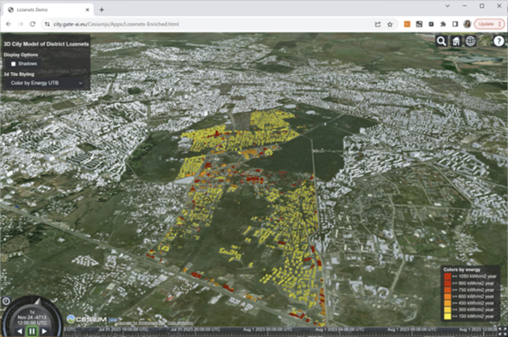 , разработен пилотно за район “Лозенец”. Той се обогатява непрекъснато с данни от разнородни източници и е основа за реализацията на различни сценарии, свързани с градските процеси и явления, включително въздействието на климатичните промени.