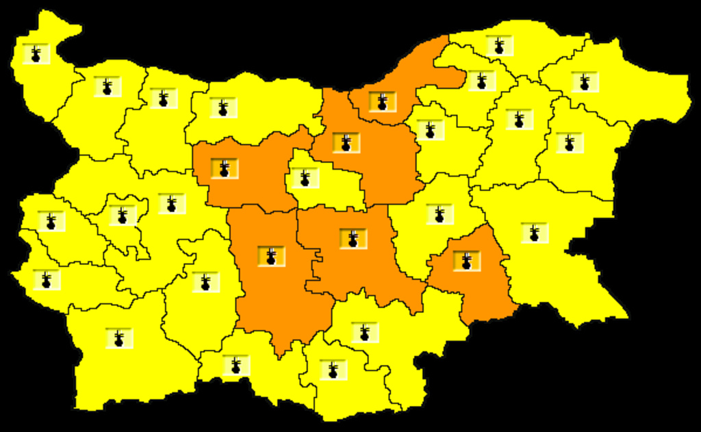 Оранжев код за жеги издаде за днес Националният институт по метеорология и хидрология за 6 области – Пловдив, Ст. Загора, Ловеч, В. Търново, Русе и Ямбол. За останалите области кодът за високи температури е жълт.