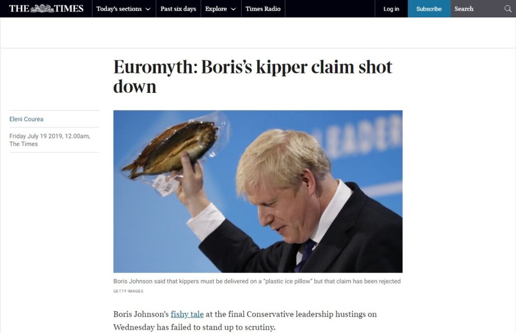 Любопитна е историята как в изказване през 2019 г. Джонсън, отдавна вече политик, обвинява "брюкселските бюрократи", че наложили вредна за околната среда и ненужна опаковка на пушената херинга в Англия. Но се оказва, че става дума за…чисто британска регулация, която няма нищо общо с Брюксел.