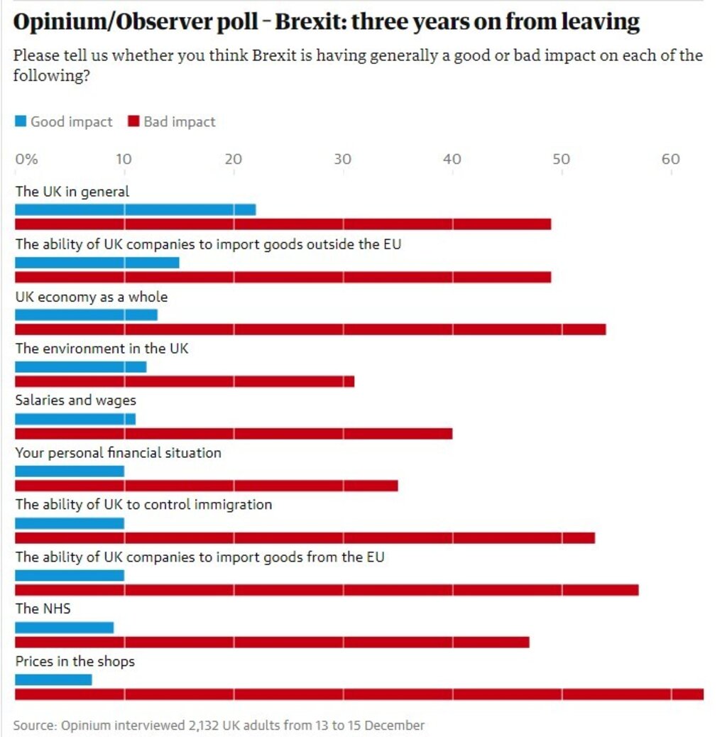 жителите на Великобритания не одобряват Брекзит и определят като лошо решение напускането на Европейския съюз (виж графиката по-долу).