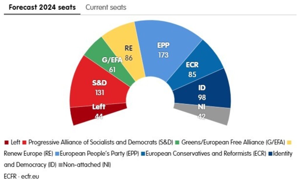 Първоначалната прогноза сочеше следното разпределение на български евродепутати – ГЕРБ - 5, ПП-ДБ - 3, "Възраждане" - 3, ДПС - 2, БСП - 2, "Има такъв народ" - 1 и "Левицата!" - 1.