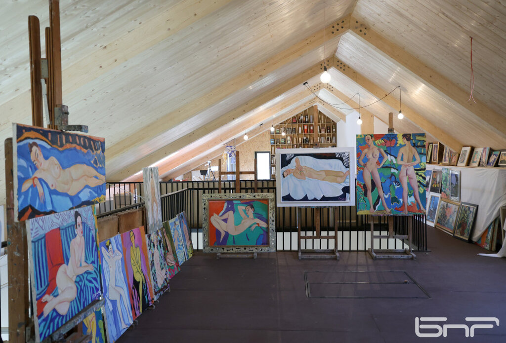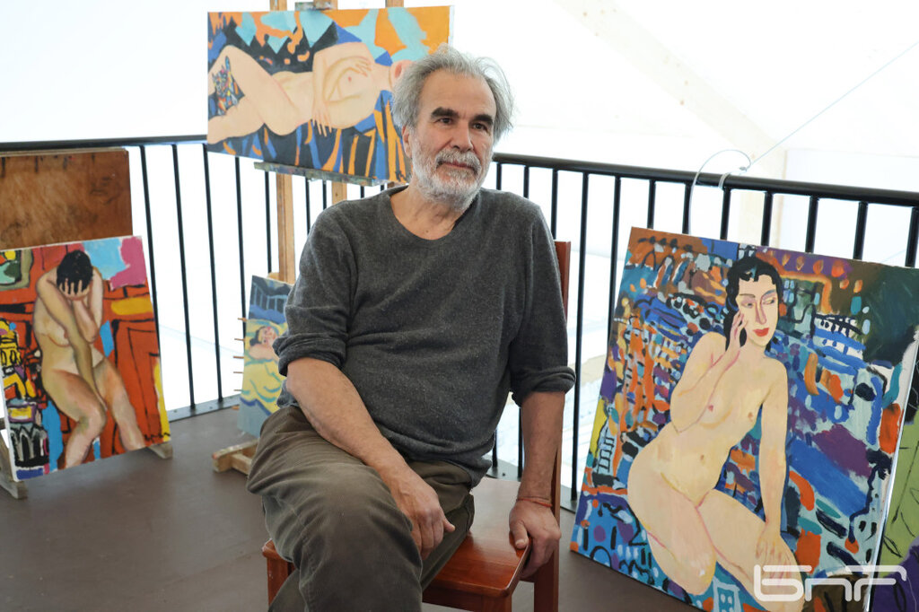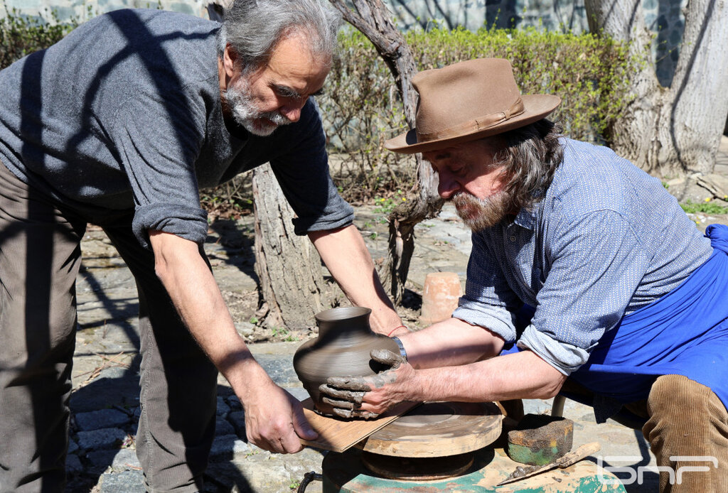 И докато любезният домакин ни разхожда из центъра и галерията, идват още гости - големият Георги Чапкънов - Чапа, екипът, който снима филм за него, керамикът Веселин Иванов, приятели и почитатели на изкуството на Вихрони Попнеделев.