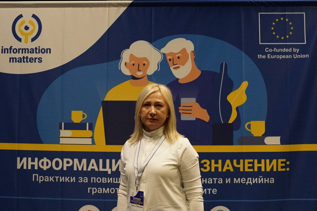 "Нашият проект цели подобряване на медийната и цифрова грамотност на хора над 55 години, за да могат да се справят в инфодемията. Тази възрастова група е от аналоговото поколение, което се отнася с по-голямо доверие към информацията в онлайн средата. Затова трябваше да развием чувствителност у възрастните кои съобщения са фалшиви новини и дезинформация, както и умения да ползват отговорно и безопасно онлайн пространството, посочи Спаска Тарандова от Фондация "Глобални Библиотеки – България" – координираща проекта „Информацията има значение“ с партньор в България комуникационната агенция PR Care
